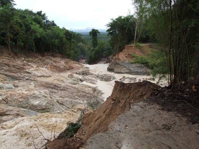 อ่างเก็บน้ำวังจันทร์แตกซัดวัด-บ้านพัง แม่ชีถูกน้ำพัดหาย