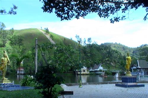 บริเวณก่อนถึงหมู่บ้านทับหลีก็มีสถานที่น่าสนใจอยู่หลายอย่าง และตรงแถวๆ หมู่บ้านก็มีคลองคอดกะ ที่ติดกับฝั่งพม่าเลย และยังมีจุดชมวิวระหว่างทางด้วย รวมทั้งน้ำตกข้างทาง แต่น้ำไม่ค่อยมากเท่าไหร่ ขับไปเรื่อยๆ จนถึงระนองแวะเติมน้ำมันซะหน่อยจะหมดถังแล้ว(จริงๆ ควรจะเติมก่อนแล้วเข้าระนอง) ว่าจะเข้าไปด่านชายแดนแต่ไปไม่ถูกเลยไปแล้วไม่อยากย้อนกลับเลยผ่านไปก่อน ผ่านบ่อน้ำร้อนเยอะมาก แต่ไม่ได้เข้าไป ผ่านภูเขาหญ้า ก็ไม่ได้เข้าเห็นอยู่ข้างทาง พอดีมีเขาหญ้าอีกลูกอยู่หลังวัด เลยขอแวะเข้าวัดซะหน่อย(จำชื่อวัดไม่ได้แล้ว)