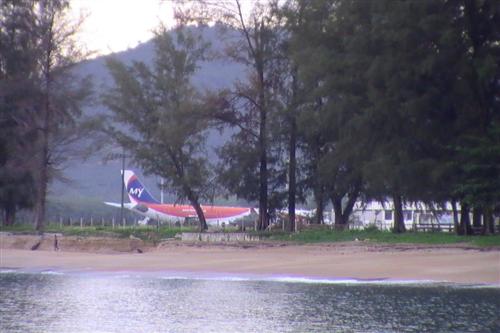 นี่ไงมองจากหาดไปเห็นสนามบินชัดเลย แต่โชคไม่ดีไม่เห็นเครื่องบินกำลังลง ได้ยินแต่เสียง