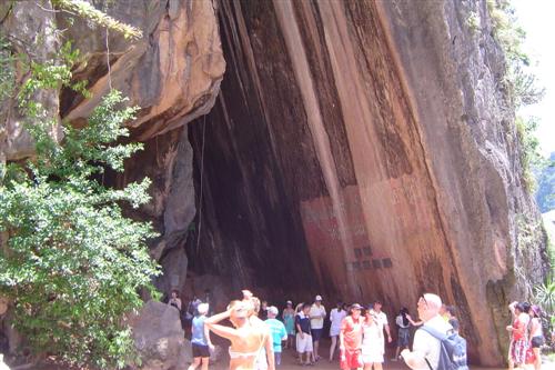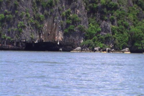ออกจากเกาะมาก็วนมาลอดถ้ำก่อน แล้วก็ผ่านจุดที่มีภาพเขียนที่ผนังถ้ำ เขียนด้วยยางไม้อายุพันปีแล้ว จอดเรือให้ถ่ายรูปซักพักก็เดินทางไปเกาะปันหยีต่อ