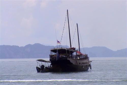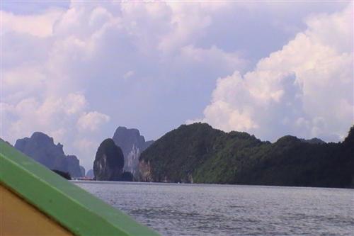 วิ่งเข้าไปจนสุดทางเป็นด่านศุลกากร(เก่า) ติดต่อเช่าเรือเพื่อไปชมเขาพิงกัน/เขาตะปู/เกาะปันหยี มาคันเดียวไม่มีคนหารด้วยเลยต้องไปกันแค่ 4 คน ออกจากท่าเรือมาสักพักก็เห็นเกาะปันหยีอยู่ข้างหน้า แต่จะแวะขากลับตรงไปเขาพิงกันก่อน