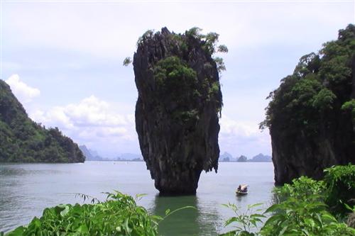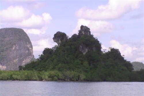 เลยมาอีกนิดก็จะเห้นเขาตะปูอยู่ข้างหน้า แต่เราจะเขาเทียบท่าบริเวณเขาพิงกัน ซึ่งอยู่ด้านหลังของเกาะ ขนาดของเขาตะปูเมื่อเทียบกับภูเขาด้านหลังแล้วเล็กไปถนัดตาเลย