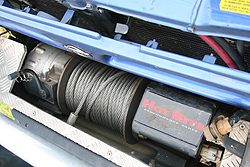 เริ่มชิ้นแรกที่กันชนหน้าใหม่ ให้ทั้งภาพลักษณ์ที่แกร่ง และแข็งแรงยิ่งขึ้น เป็นชุดกันชนอะลูมิเนียมตรงรุ่นจาก TJM พร้อมฝังวินช์ ไฟฟ้า AISIN ของแต่งติดรถ TOYOTA LAND CRUISER VX 80 ที่นำมาวางลงเพื่อการใช้กู้ภัยได้อย่างลงตัว ยึดติดชุดการ์ด กันด้านข้างรถอย่างไซด์เรล และบันไดข้างชิ้นเดียวกันฝีมือ "ช่างอ้วน" ที่ลงตัวเหมาะเจาะ เสริมสมรรถนะการขับลุยน้ำให้ดียิ่งขึ้นด้วยชุด สนอร์เกิ้ล SAFARI อีกหนึ่งชุด ส่วนตอนท้ายยังเลือกใช้กันชนเดิม จับมาสร้างชุดคานเสริมใต้กันชนด้วยเหล็กทรงกลม จับมาตกแต่ง หน้าตาให้มีดีไซน์เท่านี้เป็นอันจบ