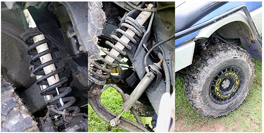 มากันที่ไฮไลต์ของการตกแต่ง กับระบบช่วงล่างที่ได้รับการปรับแต่งประสิทธิภาพกันใหม่ จากระบบพื้นฐานเดิมของกันสะเทือนล้อ หน้าแบบอิสระปีกนก ทำการเปลี่ยนมาใช้แบบคานแข็ง ซึ่งงานนี้เลือกใช้เสื้อคานหน้าของ TOYOTA LAND CRUISER LJ 78 ได้รับการเปลี่ยนทิศทางการถ่ายกำลังที่มีความอิสระยิ่งขึ้นจากยอย 8 ทิศ ของ TOYOTA LN 106 มาพร้อมกับอัตราทดเฟืองท้าย หน้าชุดใหม่ขนาด 8 : 35 ฟัน ส่วนชุดอาร์มช่วยพยุงกันเพลาพลิกก็ยังเป็นของ TOYOTA LAND CRUISER LJ 78 อีกตามเคย