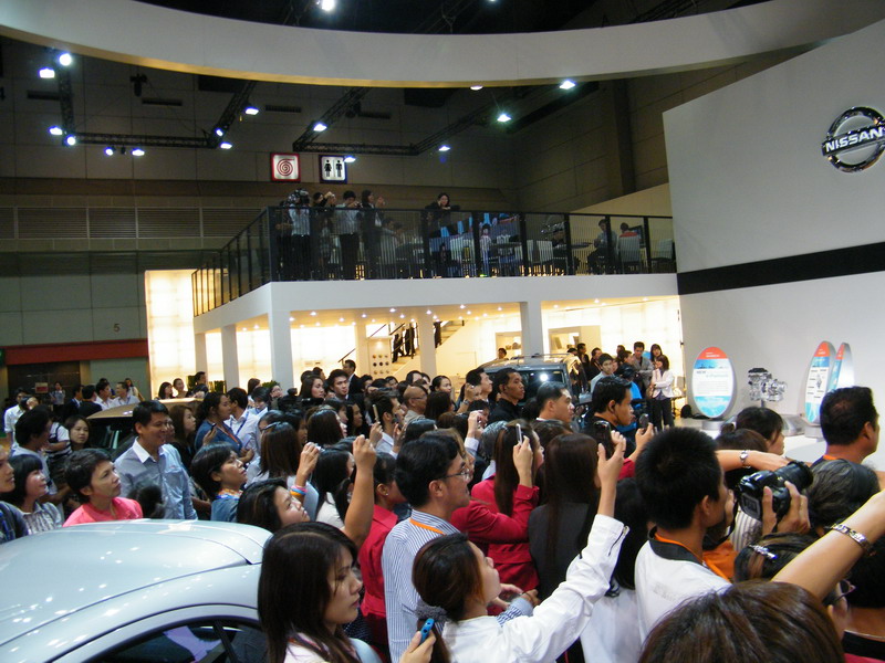 ไม่น่าเชื่อ.. ผู้คนหลั่งไหลกันมาที่บูท Nissan จนเต็มล้นบูทออกมาเลย..