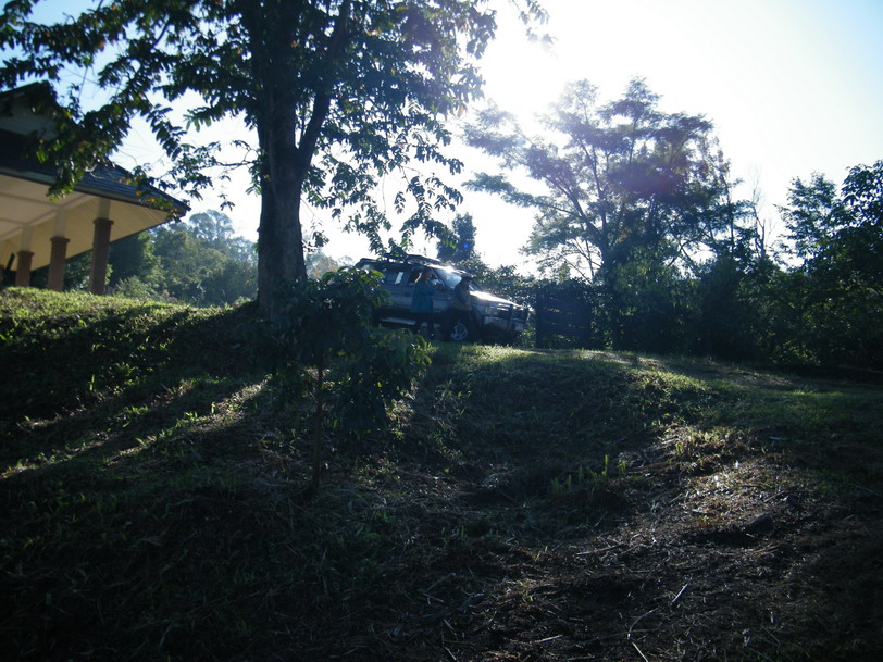 แต่พอดี.. ลงไปที่ลานกางเต้นท์ด้านล่าง ซึ่งรถขับสอง จะมีมุมไต่ทางชัน ได้น้อยกว่ารถขับสี่ แถมด้านหลังรถกระบะก็ไม่ได้บรรทุกอะไรซะด้วย.. ท้ายรถเลยเบามากไปหน่อย