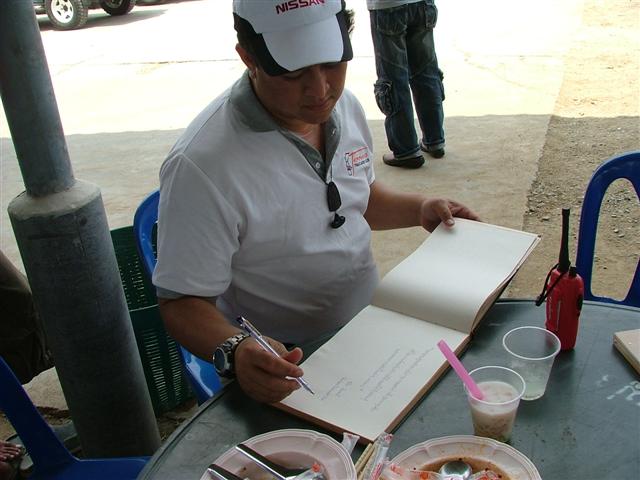 คุณบอยให้เกียรติลงนามในสมุดเียี่ยม ที่ศูนย์ ฯ สงสัยจะเขียนไปเยอะ เพราะว่าทานไปหลายจาน หรือจานเดียวแต่หลายรอบ