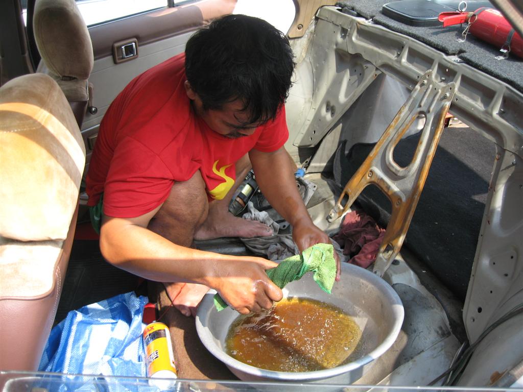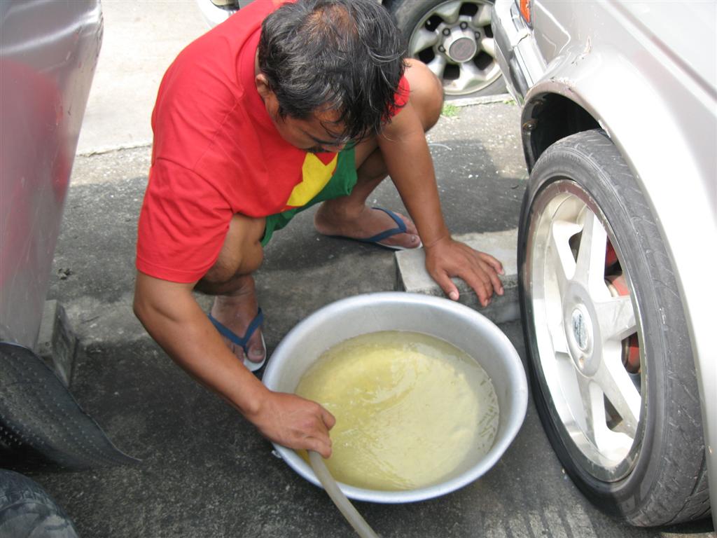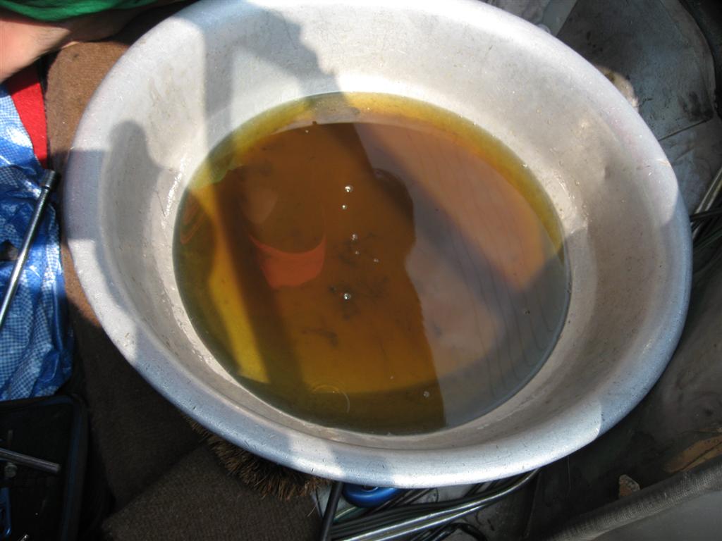 fiogf49gjkf0d ที่ก้นถัง เอาผ้าเข้าไปล้วงออกมาใด้หมดเกลี้ยง แต่สังเกตุสีของๆเหลวที่เหลือในกะละมังฃิ