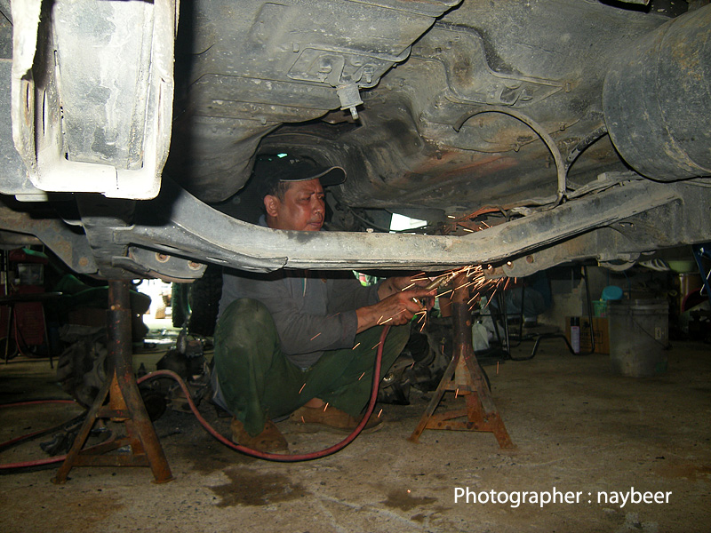 ลูกสาว ปิดเทอม ได้โอกาสทำซะที อู่แถวปากทางลำลูกกา รับปากทำให้ ใช้เวลา 2วัน รวมทำขากันชนด้วย เอาก้อนรองสูง 5 cm. ไปให้เค้า