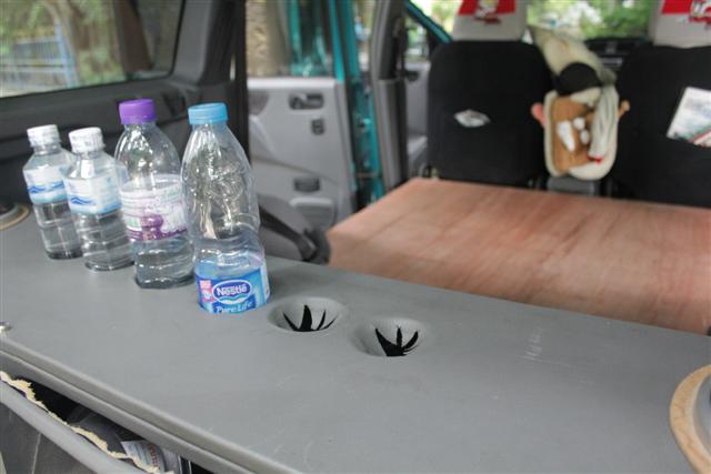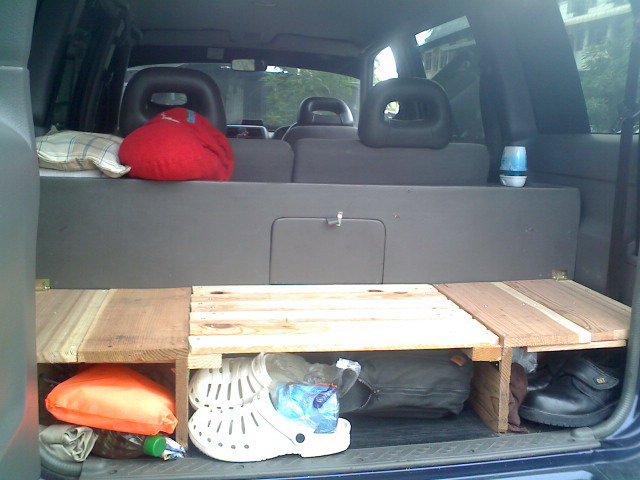 fiogf49gjkf0d DIY กับเขาบ้าง รถติดแก๊สไว้ด้านท้าย ทำที่วางแก้วซะเลย เอาเบาะออก (จริง ๆ ใส่ครบทุกเบาะ) ทำพื้นโครงเหล็กกล่อง 270 บาท ค่าเชื่อมเหล็ก 100 บาท ทำสี (ฟรี เพราะมีเหลือเก่า) ทำเบาะหนา 3 นิ้ว แบบ 2 ชิ้น 2200 บาท เอาไว้ขนจักรยานได้ 5-6 คัน พาเด็กไปเที่ยว นอนสบายดีเหมือนกัน ตามรูปครับ
