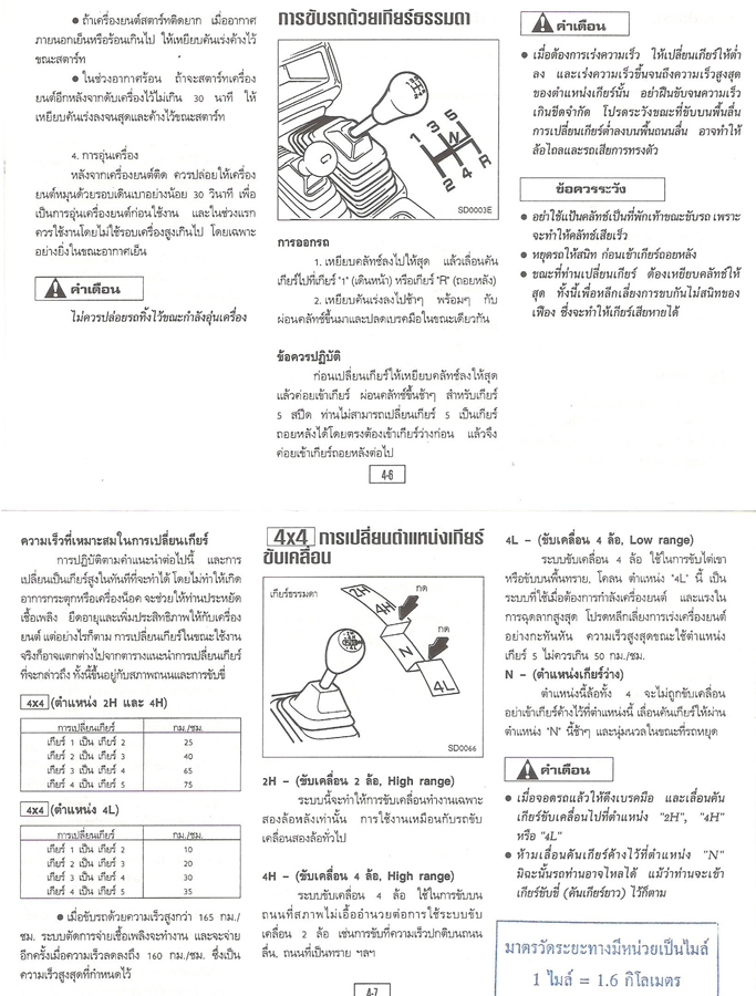 ** การออกจากตำแหน่ง 4L ต้องกดคันเกียร์ลงก่อนแล้วค่อยโยกขึ้นไป (ทำย้อนหลังเหมือนตอนเข้าเกียร์) ส่วนเกียร์ 4H สามารถเลื่อนขึ้นไปได้เลย