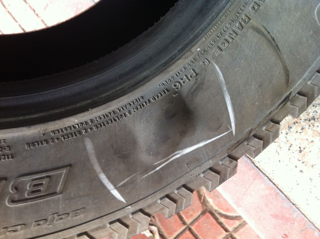 ใช้งานไปสองเดือน งานเข้าซะแล้ว สำหรับ BF มองจากหน้ารถเข้าไป ล้อหน้าซ้าย เห็นอะไรมาปูดๆแก้มยางด้านใน เอามือจับดู มานปูดเหมือนลูกมะนาวเลย โทรถามร้านว่าจะเครมได้ไหม แบบนี้ ร้านก็ตอบมาซะ น่าใจหาย รถไปตกหลุมแรงๆมาหรือเปล่า ทำให้โครงสร้างยางเสียหาย เกิดการฉีดขาด