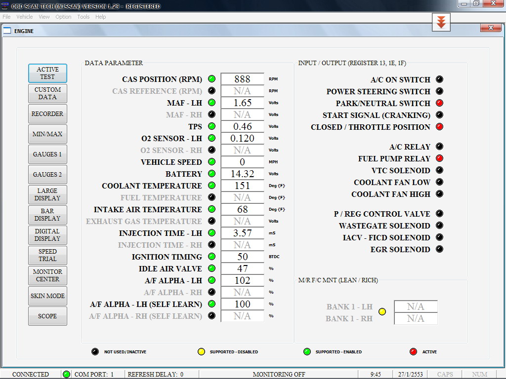 มีปรับรอบเดินเบา,ดูค่าฉีดหัวฉีด,ทดสอบการทำงานแต่ละสูบแบบออโต้
