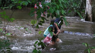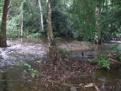 เมื่อวานเย็นไม่มีน้ำ เช้านี้น้ำหลากถึงหัวเข่าไหลแรงมาก