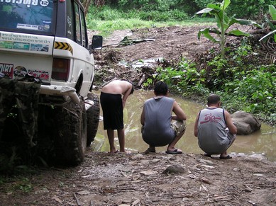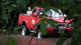คุณบอยเอารถลงไปลุยในคลองอาศัยว่าสูงกว่าเขา
