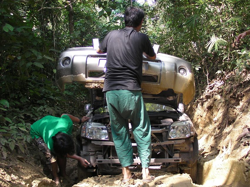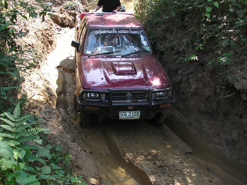 หักศอกขวากลางลำน้ำ พอขึ้นฝั่งก็หักศอกฃ้ายขึ้นเนินชัน แบบเปียกๆทั้งคัน คุณเล็ก ต้องซ่อมถึง 4 รอบ กว่าจะผ่านไปได้