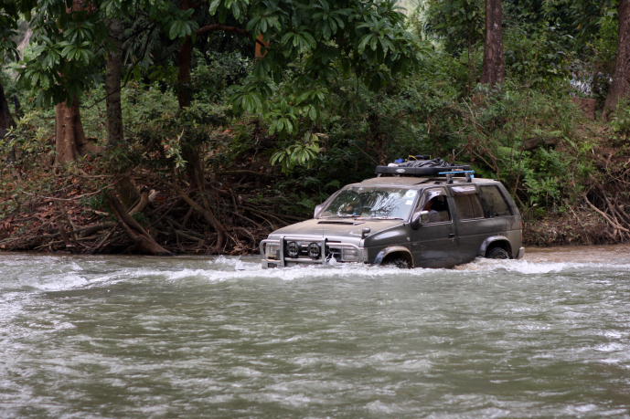 แต่จริงๆแล้วพอเป็นยาง Mud มันก้ทำให้วิ่งในทางทุรกันดารได้ดีขึ้น ครั้งสุดท้ายที่ Dogtag ได้ใช้ Winch ก็ไม่ใช่ใช้ดึงขณะวิ่งในป่าหรอกครับ.. แต่ใช้ดึงรถพรรคพวกขึ้นจากสนามหญ้า ของหน่วยพิทักษ์ป่าแถวเสาหิน พร้อมตอนกลางคืนฝนตก ดินเลยแฉะ ขนาดยาง Mud แป๊บเดียวดินเต็มล้อ เป็นโดนัทเลย อย่างว่าเราก็ไม่อยากจะดิ้นด้วย เดี๋ยวสนามหญ้าเขาพังหมด.. สุดท้ายเลยตั้งวินซ์กัน แถมคันเดียวไม่อยู่ ต้องใช้ 2 คันช่วยดึงด้วย ชอบตายตอนน้ำตื้นนี่แหละครับ..