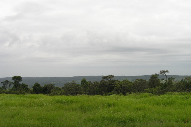 ทุ่งหญ้าสีเขียวกลางป่าใหญ่