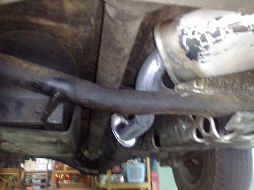 พี่เรครับ รบกวนถ่ายภาพแนวท่อไอเสียใต้ท้องให้ชมสักหน่อยครับ ว่าวางกลางเพื่อหลบถังสองใบอย่างไรครับ