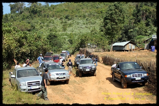 ออกเดินทางจากจุดนัดพบที่1 เวลา 22.00 ถนน บางนา-ตราด วิ่งตามกันไปเรื่อยๆ เพราะมีจำนวนรถร่วมขบวนมาก เกือบ40คัน ไปถึงจุดฝากรถ สำหรับรถขับสอง อบต แม่อุสุ เกือบ8โมงเช้า ขนถ่ายสิ่งของ บริจาคให้กับโรงเรียน ขึ้นรถ ขับเคลื่อน 4ล้อ เตรียมออกลุยกัน แต่ก็มีรถขับสองที่ขึ้นไปด้วย 2-3 คัน ยอมรับจิตใจจริงๆ