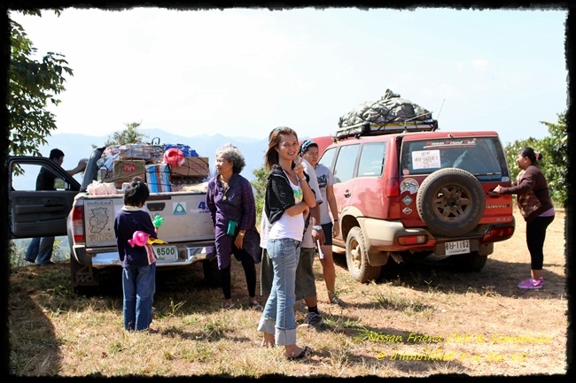 รถของสมาชิก NFC เชียงใหม่ มาช่วยขน สิ่งของบริจาคขึ้นดอย และช่วยนำทางให้ด้วย