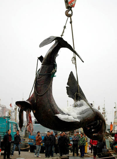 "ชาวประมงจีน “ส้มหล่น” จับได้ฉลามยักษ์ 4 ตัน"