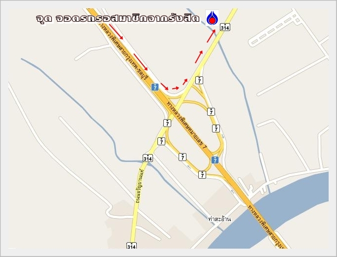 เมื่อเลี้ยวซ้ายเข้าถนน ฉะเชิงเทรา – บางปะกง (ทางหลวง หมายเลข 314) มาแล้ว ให้วิ่งตรงไปจะเจอปั้มน้ำมัน ปตท อยู่ซ้ายมือ เราจะแวะจอดรถกันที่นี้ เพื่อจอดรอสมาชิกจากรังสิตและจากจุดอื่นๆด้วยครับ