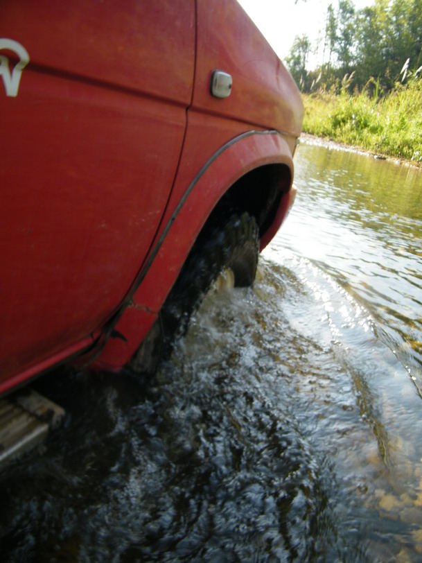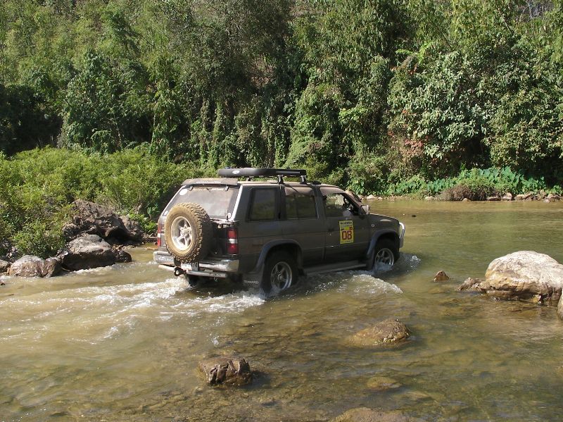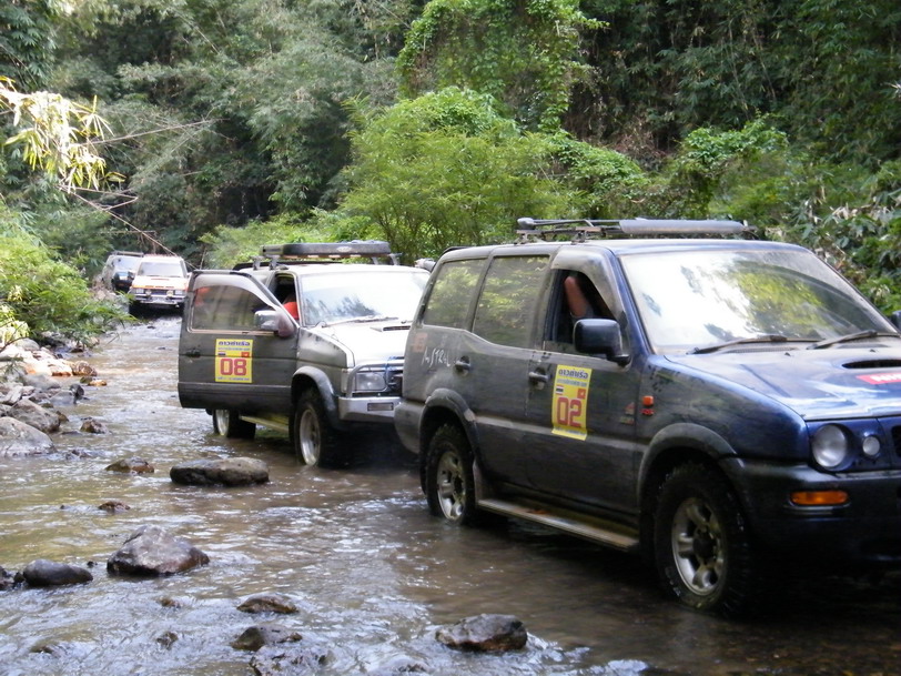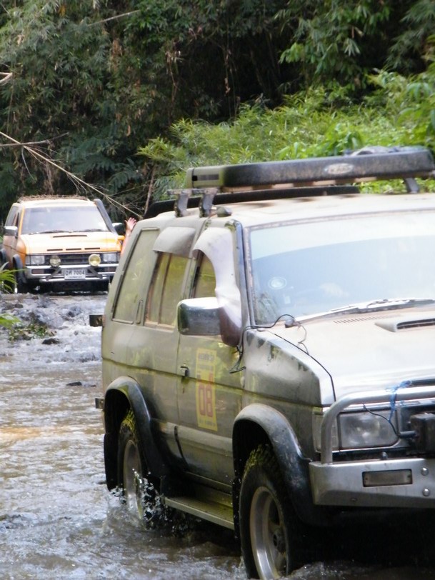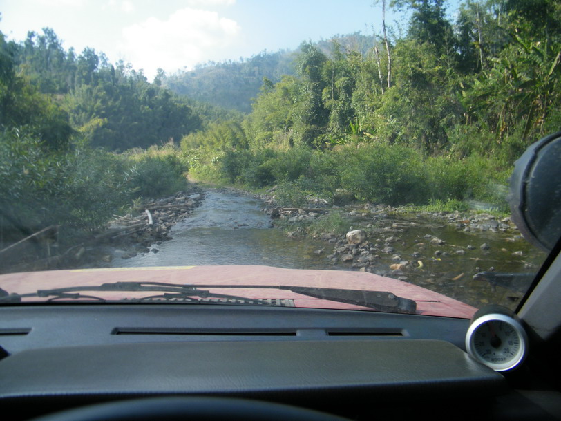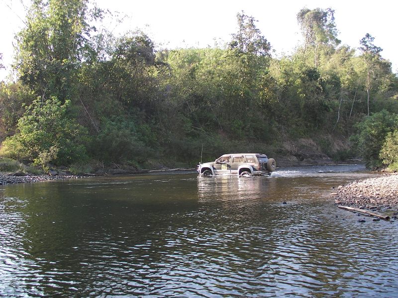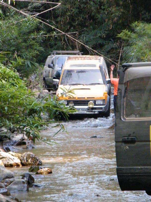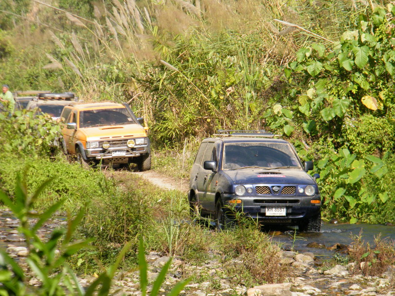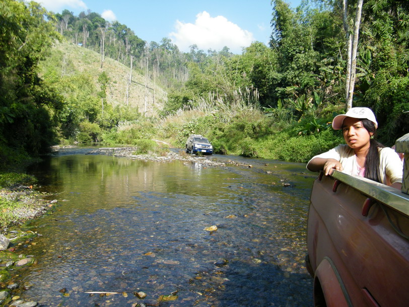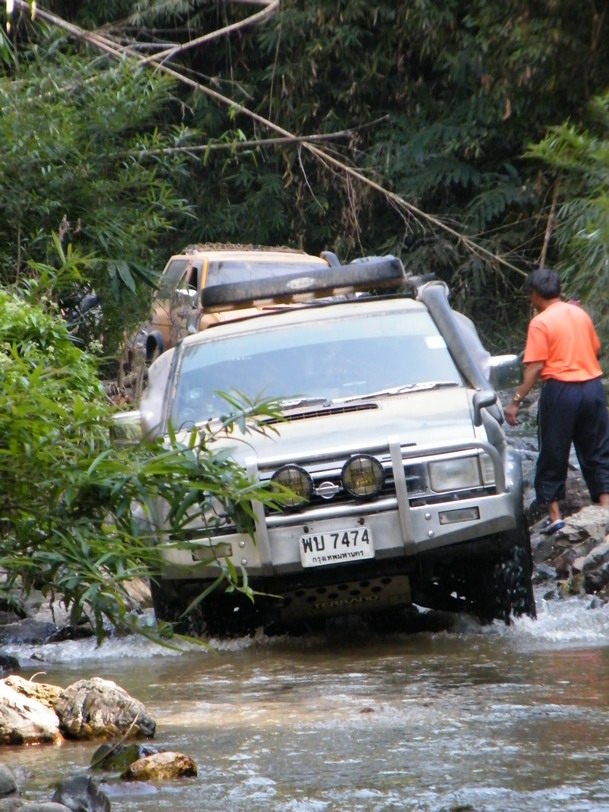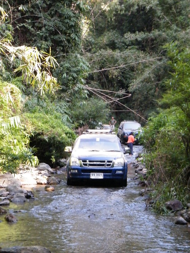 ขณะที่ผมขับนำขบวนไปนั้น หลายๆลำธาร มีระดับลึกระดับกลางๆ คือ ประมาณครึ่งล้อ