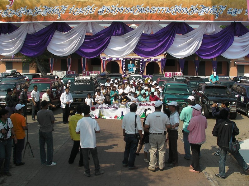 พร้อมแล้วออกเดินทาง เข้าตัวจังหวัดสิงห์บุรี ทางเจ้าภาพจัดรถตำรวจนำขบวนไปยังศาลากลางหลังเก่า