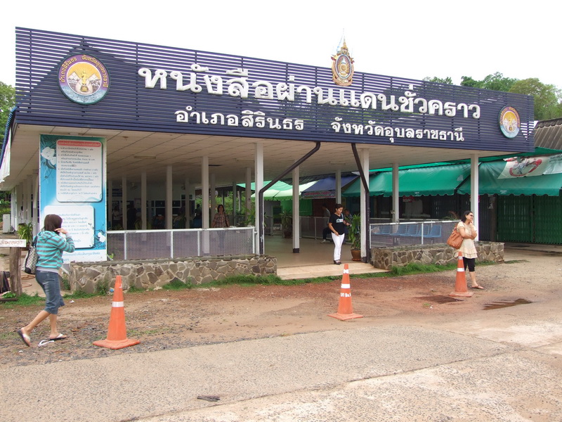 สำนักงานทำบัตรผ่านแดนชั่วคราว อ.สิรินธร (ช่องเม็ก) ตั้งอยู่ที่ตลาดร้างด้านซ้ายมือ