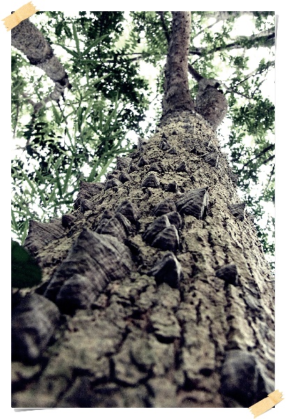 ผิวและลักษณะของลำต้นครับ จะมีหนามคล้ายต้นงิ้ว