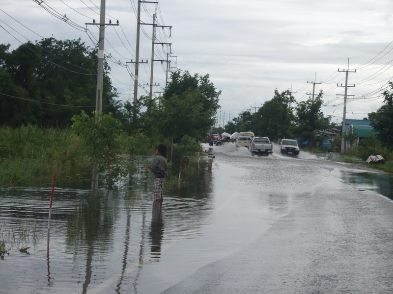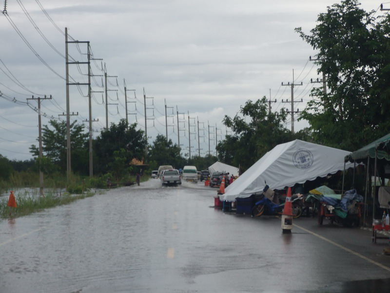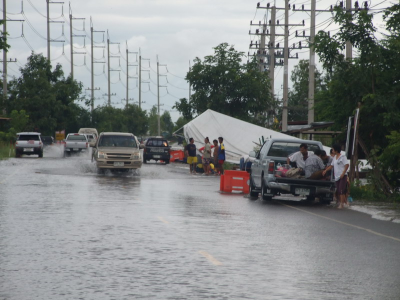 fiogf49gjkf0d ชาวบ้านที่ บ้านถูก น้ำท่วม ได้มาทำเพิงพักริมถนน ส่วนทีสูงกว่า