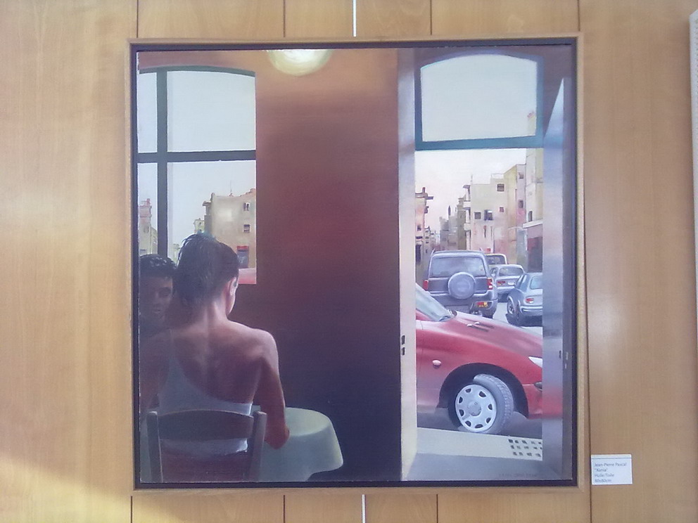 เป้นภาพวาดในมุมมองที่มองออกจากร้านอาหารออกไป..