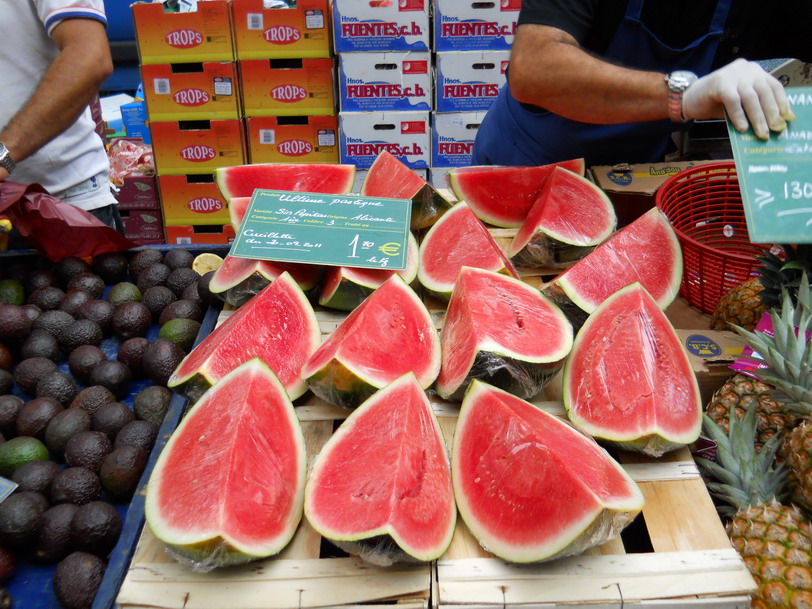 แตงโม ( Water Melon )... กิโลละ 1.70 EUR ( 1.7x43 = 73 บาท )