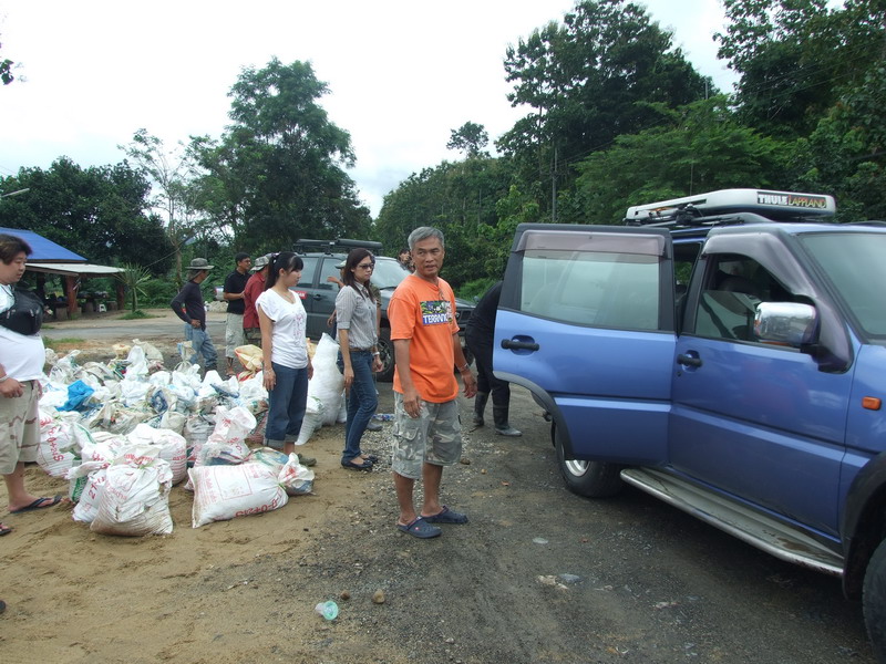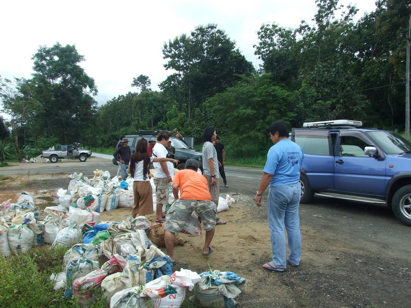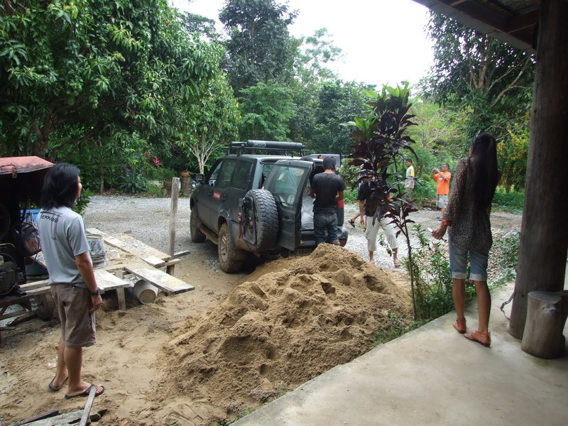 อิ่มท้องแล้วก้อออกเดินทางไป ทำภาระกิจหลัก ขนหินและทรายเข้าวัดครับ