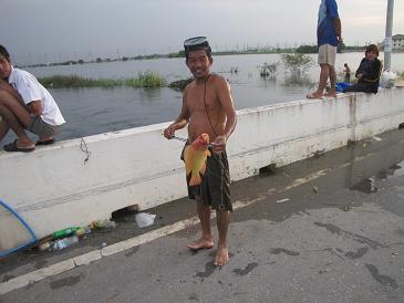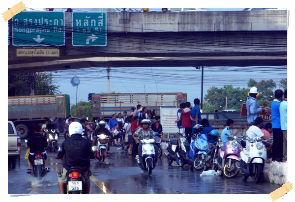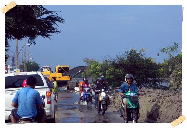 อย่างไรก็ตาม เพื่อความแน่ใจ เขาจึงรีบบึ่งมอเตอร์ไซค์มาที่หน้าปากซอยเพื่อดูสถานการณ์น้ำในคลองประปา และพบว่าน้ำอยู่ในระดับสูงเกือบถึงใต้สะพานข้ามคลองประปาหน้ามหาวิทยาลัยธุรกิจบัณฑิตย์ ซึ่งเป็นปริมาณน้ำที่สูงอย่างไม่ค่อยได้เห็นบ่อยครั้งนักในช่วงกว่า 30 ปีที่อาศัยอยู่ในละแวกนั้น ส่วนบนถนนประชาชื่นก็เต็มไปด้วยรถยนต์และมอเตอร์ไซค์ที่ห้อกันเต็มเหยียด โดยมีจุดหมายเดียวกันคือ "หนีน้ำ"