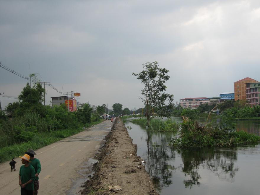 มาถึง ตกใจน้ำในคลองอยูสูงกว่าไฃด์งาน เมตรกว่าๆเกือบสองเมตร มีคันดินกว้าง เมตรเศษๆกั้นอยู่แค่นั้น น้ำก็เต็มคันดินเลย มันจะอยู่ใด้กี่วันนี่ คันดินนี่ยาว40กว่า กมครับ