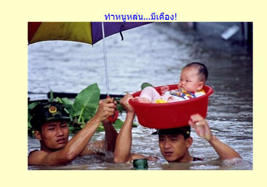 ปีนี้ใครไม่โดนน้ำท่วม ไม่ทันสมัยน๊ะตาพงศ์ จาก : ฅนบางกอก(rawat) 24/10/2554 14:27:35 [124.121.252.10] |