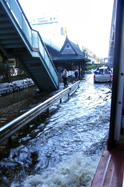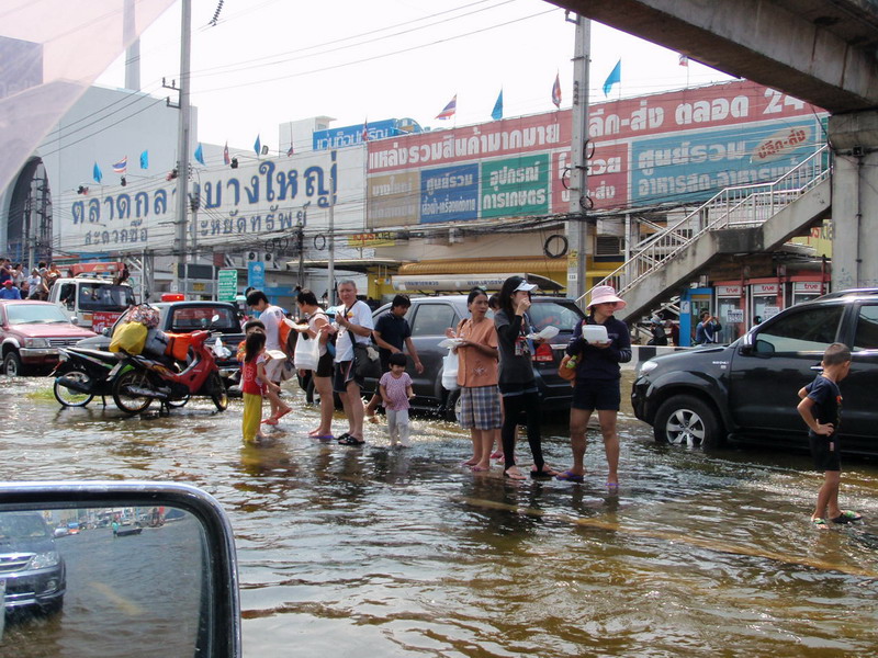 บางบัวทองก็แปะเหงี่ย(เหมือนกัน)น้ำยังสูง รถเมล์ก็วิ่งแค่บางบัวทอง