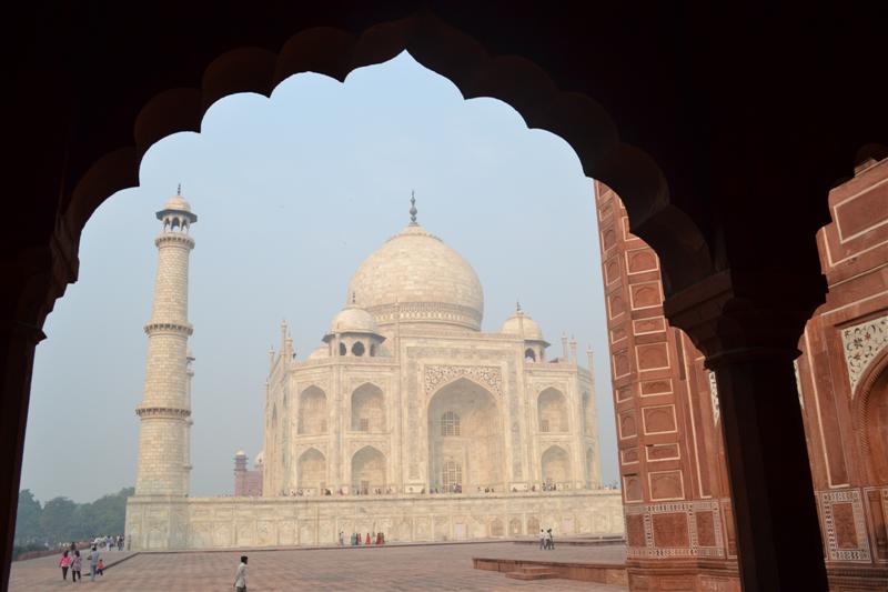 ทัชมาฮาล อนุสรณ์สถานแ่งความรักอมตะ 1 ใน 7 สิ่งมหัศจรรย์ของโลก ตั้งอยู่ริมฝั่งแม่น้ำยมุนา