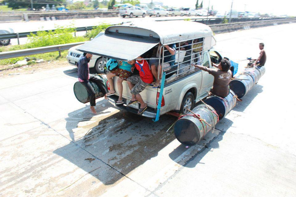 ปีนออกจากหัวเก๋ง.. ไปยืนอยู่ในกระบะหลัง แล้วหยิบชุด Fishing suit ออกมาฉลองซะเลยครับ...