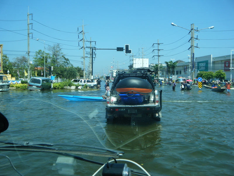 จน ถึงบริเวณหน้าบ้าน.. ระดับลดลงไปมาเมื่อเทียบกับภาพ ที่ทีมชุดพี่สิงห์เข้าไป แต่ก็เกือบถึงบันไดข้างรถคันแดงครับ.. ราว 40 กว่าเซนติเมตร