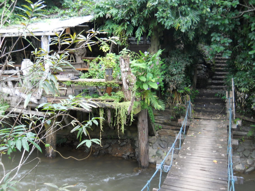 เมื่อก่อน.. จอดรถแล้วเดินลุยน้ำตื้นๆไปขึ้นบันได เพื่อข้ามบันไดสลิงเข้าบ้าน..