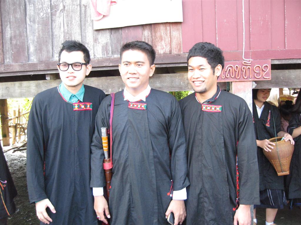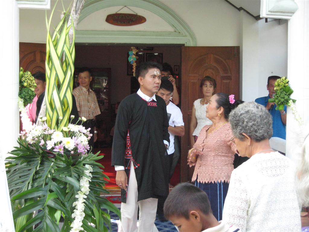 เจ้าบ่าวในชุดพื้นเมืองของเจ้าสาวครับ ที่เจ้าบ่าวพกมีดๆคือเครื่องมือทำมาหากิน มีความหมายว่าขอให้รักจริงมาแต่ตัวกับมีดก็พอครับ