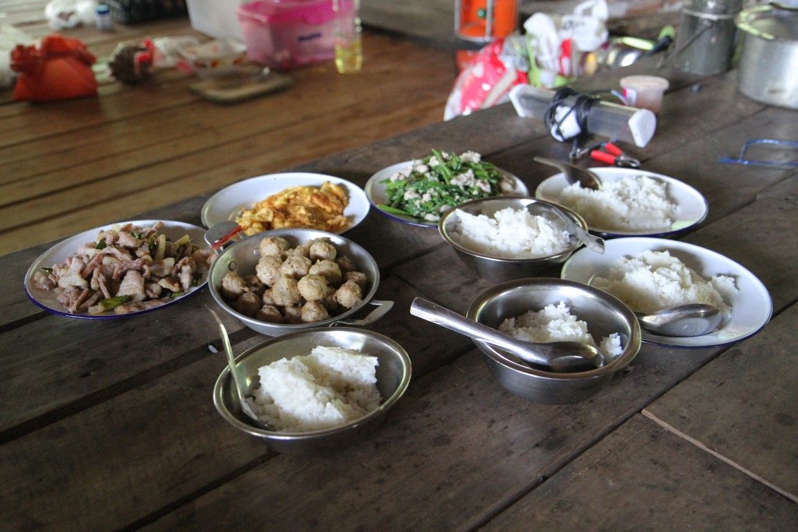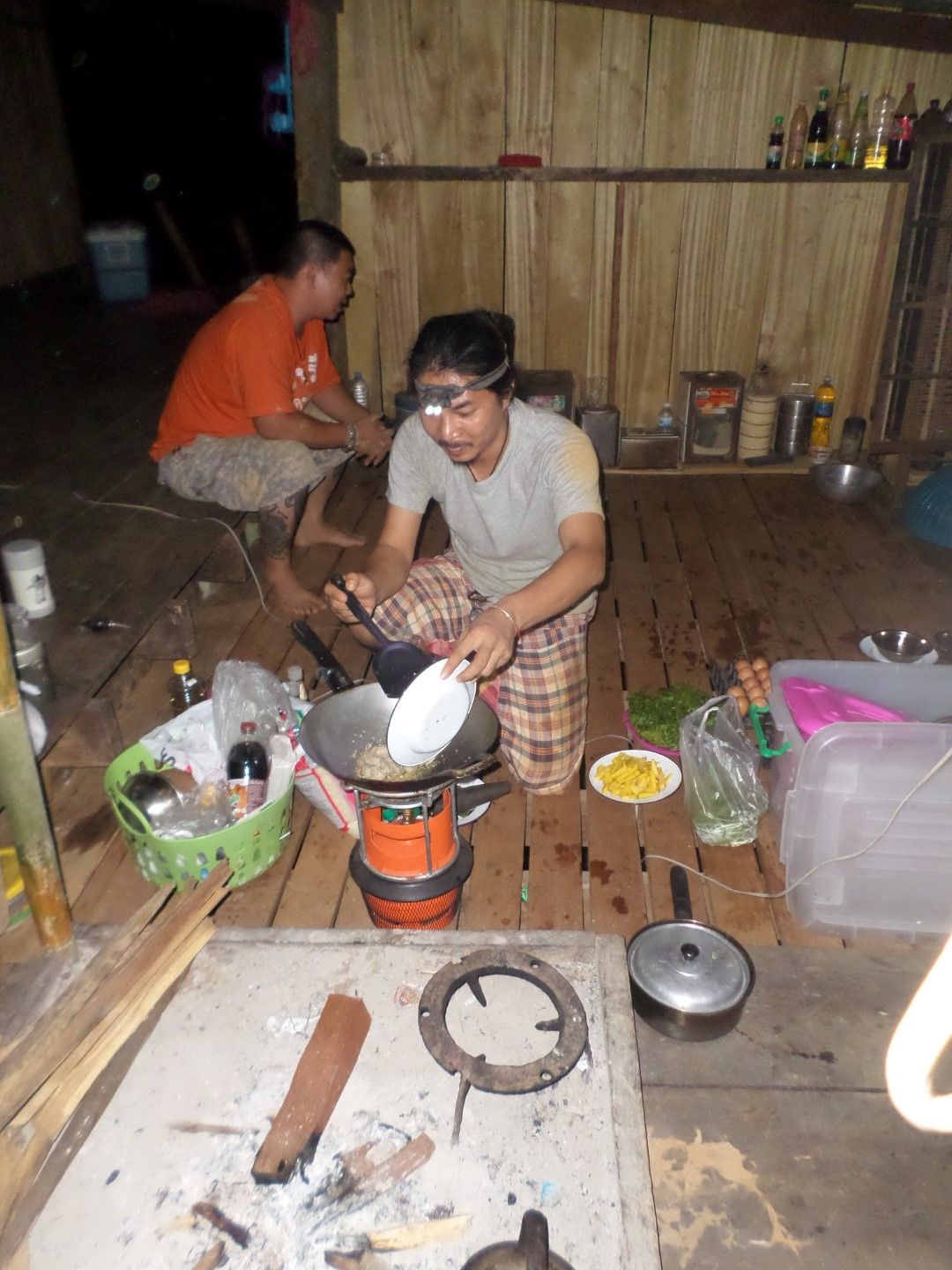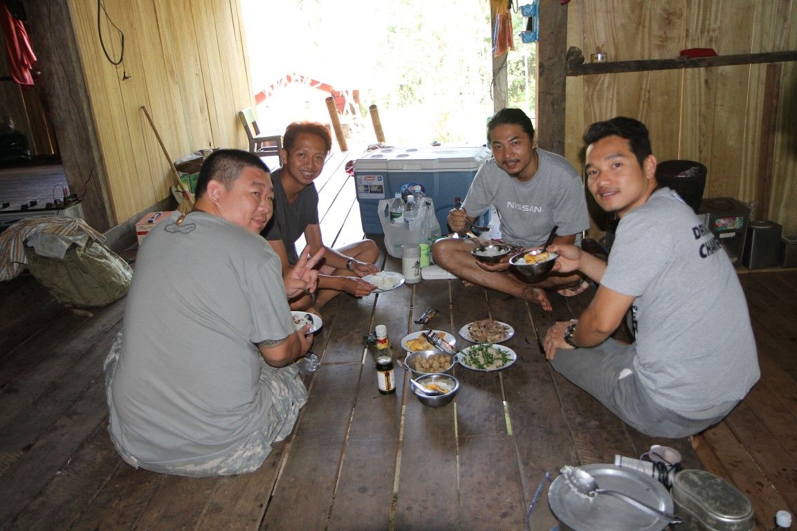 พ่อครัวใหญ่เตรียมอาหารเช้า 8.30 น. ทานอาหารกันก่อนที่จะนำปูนลงจากรถ