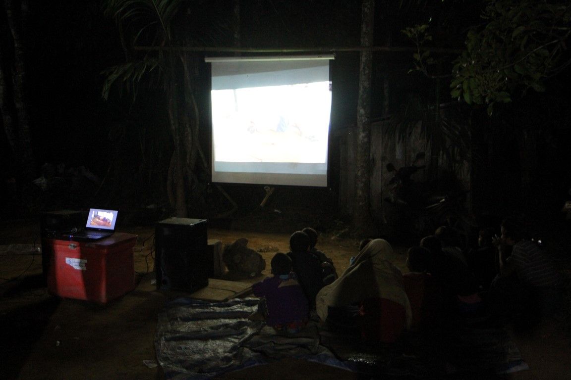 มีการฉายหนัง ภาษากะเหรี่ยง ถ่ายทำโดยพม่า โดยใช้ notebook ต่อผ่าน Projector