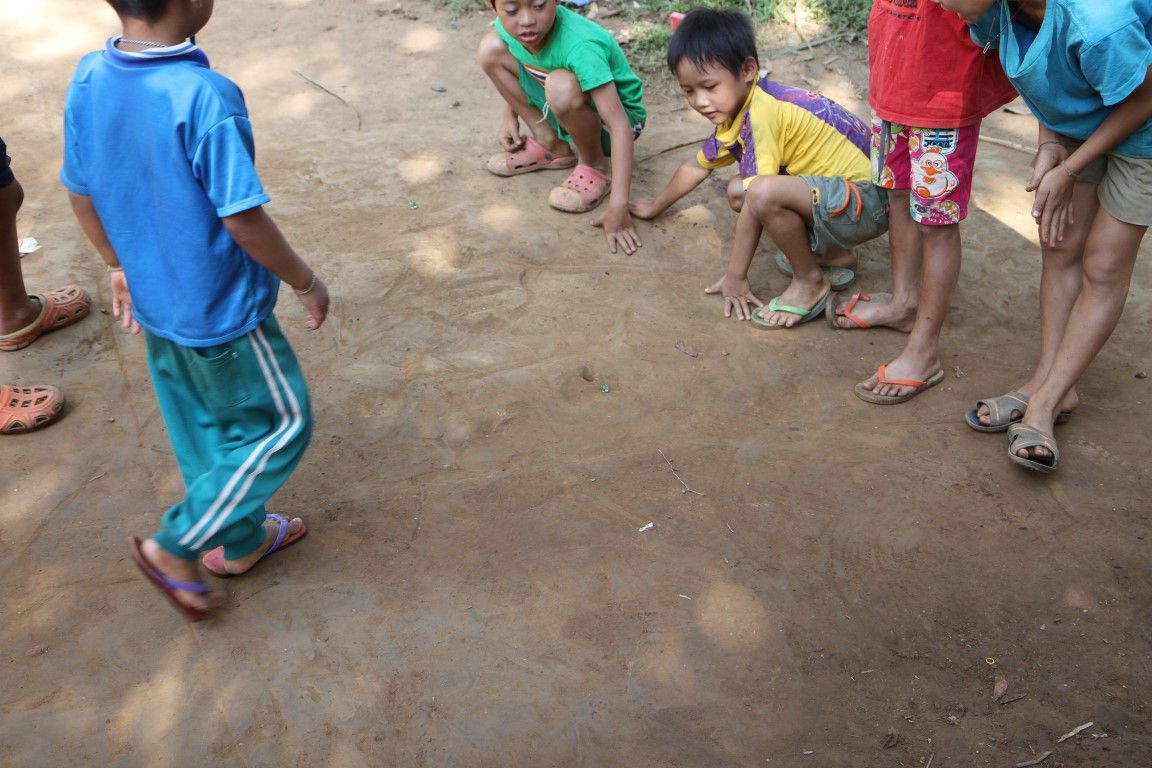 เด็ก ๆ เล่นดีดลูกแก้วกัน เหมือนสมัยที่ยังเป็นเด็ก ๆ อยู่เลย อดไม่ได้ที่ต้องเข้าไปขอเล่นบ้าง...