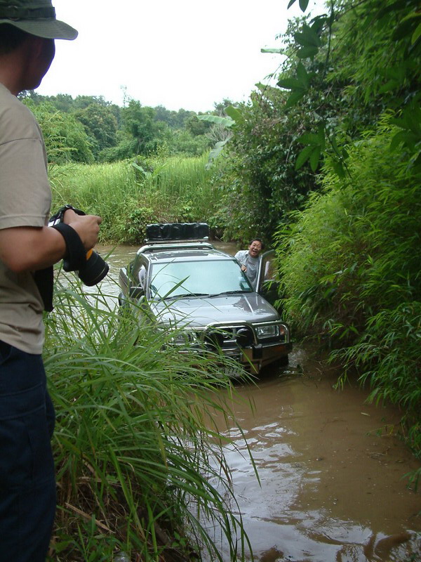 ผ่านลำน้ำมา ตาหนุ่ม กำลังดิ้นขึ้น ครับ แต่ไม่ไหว ยางเป็นโดนัทแล้ว ต้อง กลับลงไปล้างยางใหม่