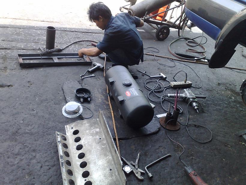 ด้านหน้าถังแก๊สไม่ติดอะไร ทำขายึดกับคานขวางเลยครับ