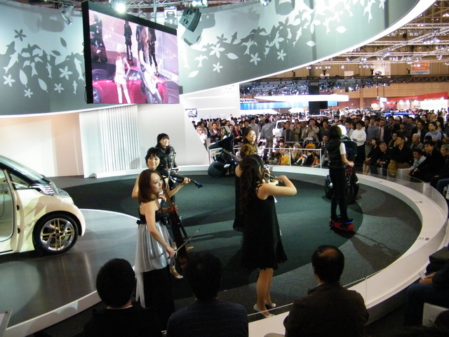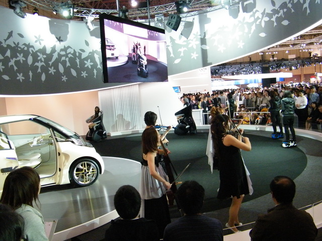 ระหว่างที่ Presenter กำลัง Show บนเวที.. ที่ญี่ปุ่นปีนี้แต่ละค่าย ทำเวทีเล็กๆ เตี้ยๆ แทบทั้งนั้นเลย พื้นที่จัดวางรถโชว์ก็ไม่ได้ยกพื้นให้สูงขึ้นมา... สงสัยประหยัดงบกันน่าดู เพราะเศรษฐกิจในญี่ปุ่นปีนี้ไม่ค่อยดีเท่าไร..